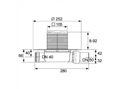 - TECE Трап низкий горизонтальный с фланцем